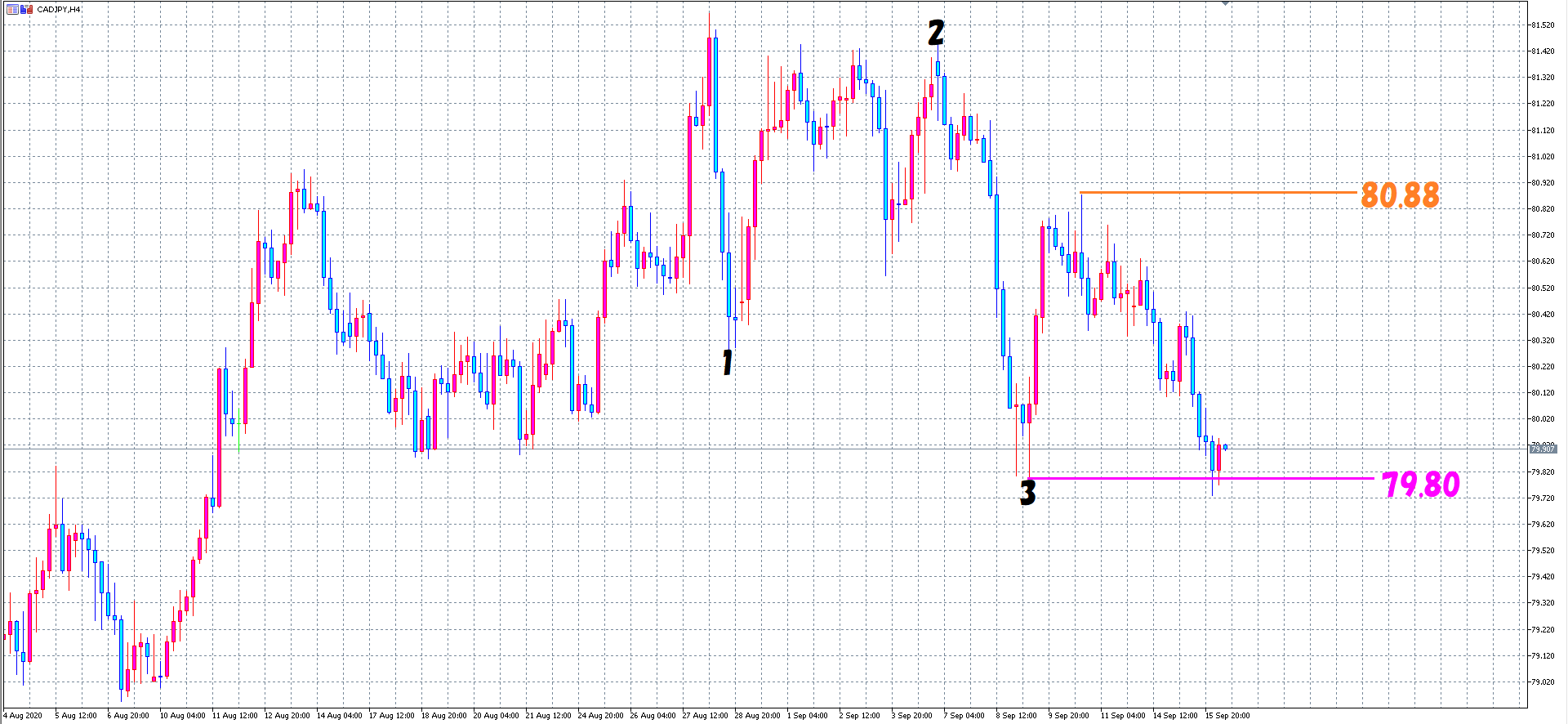 ただ、79.73で4時間足がアップトレンドへ反転しているという台本で想定している方はロングエントリーポイントです。